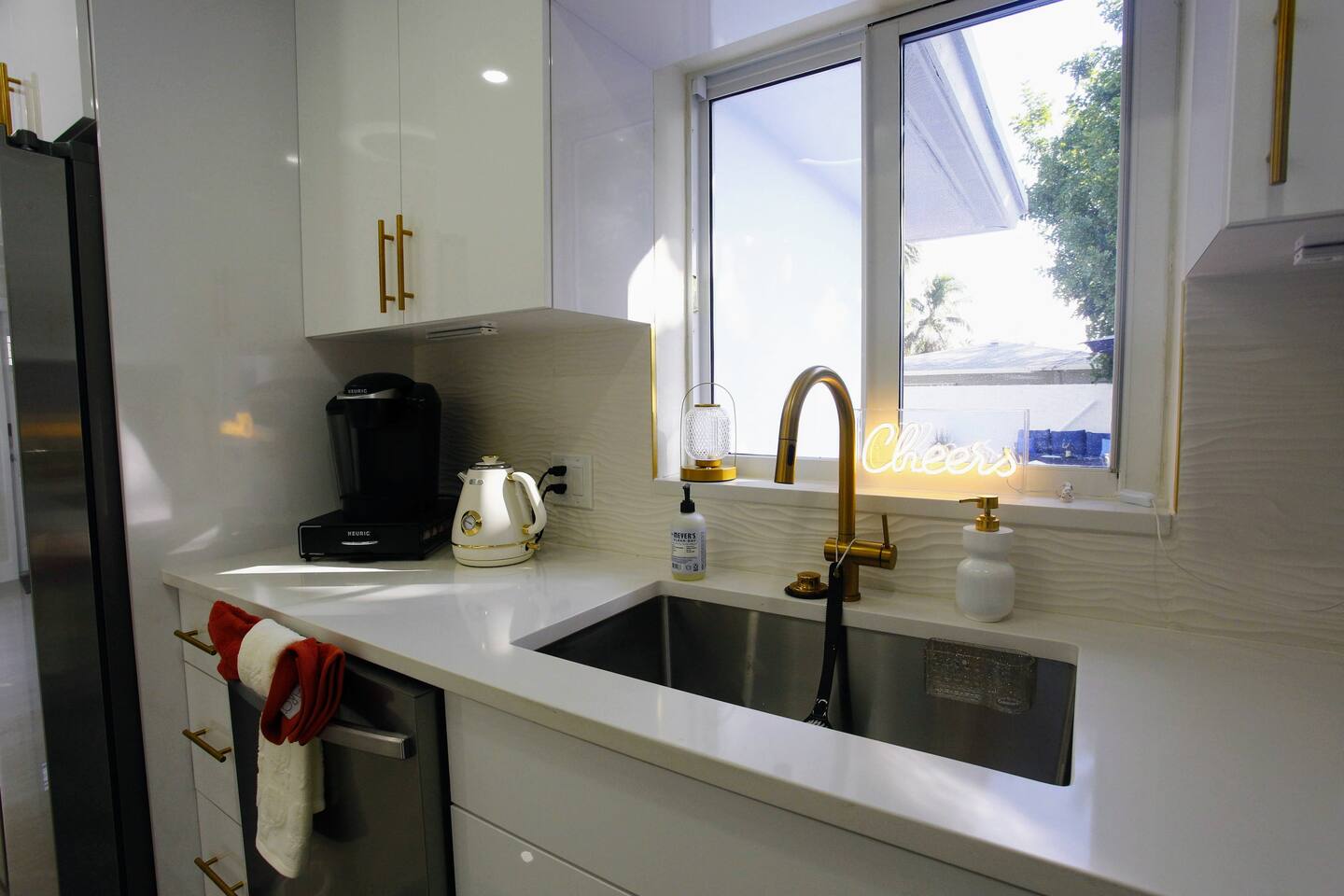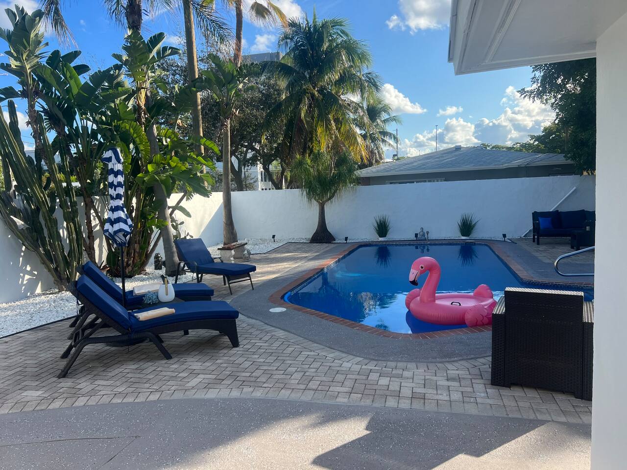 At Azure Dreams House magical energy fills the air and unforgettable memories are created—making you want to come back again and again. You will find it Ideal for families, couples or small groups of friends! Featuring a charming 2 BR, 1 Bath resort style with heated saltwater pool, all in complete privacy surrounded by a tropical garden, located in a beautiful neighborhood full of palm trees and with spectacular gardens around it, quiet and safe. You will notice that Azure Dreams House is designed with guest comfort in mind ✔ 2 Charming bedroom ✔ 75 inch Smart TV ✔ Fast Wi-Fi (300Mbps) ✔ New fully equipped kitchen ✔ Oasis Backyard ✔ Heated saltwater Pool ✔ Natural backyard area to relax + BBQ area ✔ Free Parking (4 cars) LIVING ROOM The perfect space to read and watch TV or relax while watching your folks playing in the pool. ✔ Comfortable 4-seater modular couch ✔ Smart TV (75-inch) ✔ Side table with organic decorative accessories ✔ Library with good reading options ✔ In this open space we have thought of an area to work in those moments where you have to, a perfect, electric adjustable height desk for your laptop with Monitor, Conference Camera, Keyboard and Mouse to connect one USB-C cable to your laptop and comfortably do your work. ✔ Comfortable dedicated office chair THE KITCHEN & DINING ROOM ✔ It is fully equipped with everything you need to create a perfect meal at home, you will find all ingredients for your recipes (PUBLIX, ALDI & WHOLE FOODS MARKET) 5 minutes from the house, Otherwise we are in love with family meals therefore keeping majority of ingridients available for you such as Salt (Sea, Pink, etc...)Avocado/Olive Oil, All kinds of pepper and so on ✔ Cooktop ✔ Refrigerator/Freeze ✔ Dishwasher ✔Microwave ✔Sink ✔ Fabulous coffee & tea station (Complimentary Pods + brown sugar + matcha and regular tea) ✔ Hot Water Kettle ✔ Blender ✔ Toaster ✔ Trays ✔ Glasses/cups/plates - indoor /outdoor ✔ Silverware/Goldenware ) ✔ Pots, Pans, Trays and more Cooking is not your thing, No problem, in the provided guestbook you will find plenty of World-class restaurants in the area that you can go to or order home delivery. ✔ Round dining table cozy space that will be the center of the house with 4 comfortable fabulous designer chairs. 2 BEDROOMS Sleeping at Azure Dreams house will be a perfect experience of relaxation and rest after a great day of sun, pool and beach. 2 amazing rooms minimally decorated with the best taste await you. The owner of Azure Dreams House thought of every detail when designing it for you ✔ Bedroom 1: Queen-Size Bed ✔ Bedroom 2: Queen-Size Bed ✔ Impeccable top quality mattresses. ✔ linen bedding, sheets, pillows, along with cushions ✔ Closets with hangers ✔ Dressers with drawers ✔ Night tables with usb outlets and lights ✔ No TVs in bedrooms, as we believe it’s crucial to get uninterrupted rest. BATHROOM A relaxing and modern space with everything you need for a first-class stay ✔ Hot and cold shower ✔ Heated Mirror to keep it clear while taking shower ✔ Contemporary vanity ✔ New Toilet with Japanese washlet and heated seat ✔ Towels ✔ Hair Dryer ✔ Shampoo & conditioner ✔ Selection of sunscreens and tanning oils ✔ Body cream & makeup remover wipes ✔ Body soap all with a soft and organic scent You will love it. PRIVATE BACKYARD WITH BEAUTIFUL POOL It is one of the favorite places in the house, with a perfect multiple zones with natural shadow and variety of sitting arrangements, full of cushions under the trees, ideal for relaxing after a day of sun and beach. Saltwater pool will be set to a comfortable 75°F during chilly weather (we sometimes have it) otherwise it's naturally heated during warm seasons Don't forget to take millions of photos to collect unforgettable moments. More Backyard information ✔ Full size Gas BBQ and proper utensils ✔ Convenient and sizable outdoor dining table with 6 seats + large umbrella ✔ Sitting areas with different couches ✔ Spectacular lighting ✔ Soft padded sun loungers ✔ Relaxation area with chairs ✔ Wonderful garden and trees ✔ AI driven night time illumination based on closest holiday FREE USE BEACH ACCESSORIES ✔4 foldable beach chairs ✔ Medium size umbrella ✔Tote Bag for the beach ✔ Beach towels ✔ Beach cooler on wheels and more We know how useful all these items are. (take care of them so you always enjoy them) Important things you should know AZURE DREAMS HOUSE IS FULLY DISINFECTED AND PROFESSIONALLY, THOROUGHLY CLEANED BEFORE EACH CHECK-IN, OUR PRIORITY IS TO PROTECT OUR GUESTS. DO NOT SMOKE INSIDE THE HOUSE There is a designated area in the backyard. Any evidence of smoking inside the house will result in a $500 charge for odor removal, and furniture cleaning. PARTIES OR EVENTS ARE NOT ALLOWED We want you to have fun at the house, But if you are looking for a place for parties, then this is not the place for you. LOST/STOLEN: We are not responsible for any lost or stolen items. 24/7 AVAILABLE HOST